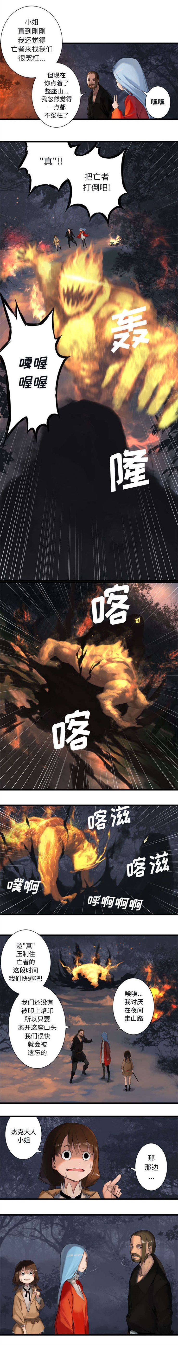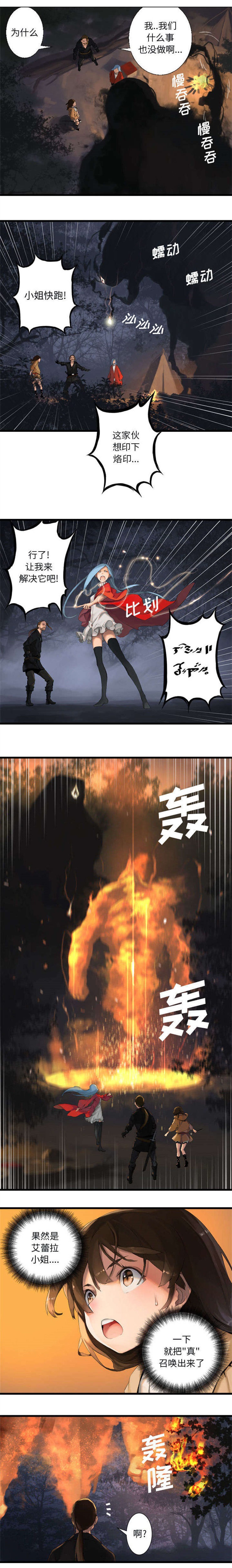 艾蕾拉大小姐听了小爱召唤苍兽大人战胜大蚊怪的经历后,没忍住大笑起来,杰克大人也是非常茫然,因为在他们眼中,小爱连最基本的召唤术都不能成功使用,可就在这个时候,随着声声巨响,大量的亡者正在向他们袭来,想给他们印下烙印,艾蕾拉小姐立马召唤出了“真”,几乎点燃了一整座山,成功压制住了眼前这一群亡者,可是慢慢的,越来越多的亡者靠近了,“真”也无法压制了,三人开始了他们的逃亡之旅……