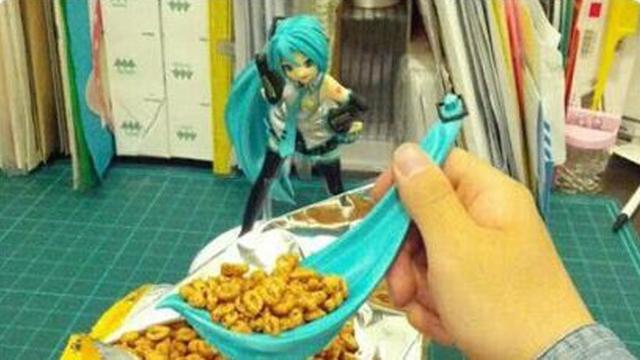 初音未来款型的勺子。初音未来在二次元圈内,可谓是人人皆知,她并非某一部动漫的人物角色,而是二次元的虚拟偶像,是世界上第一个使用全息投影技术举办演唱会的虚拟偶像,因此她的人气可想而知。以初音未来为形象基础的手办、周边等相继推出,因为初音未来最为代表性的是她长长的马尾,于是手办也完美地复制这个特点。不过这双马尾在奇葩网友手中发挥出不一样的用处,比如拿来吃饭。