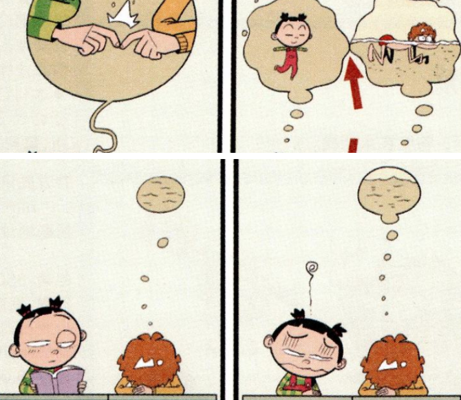 今天上这课的时候,因为天气的原因,同学们都是感觉很想睡觉的样子,就连爱学习的大脸妹也是有点昏昏欲睡的感觉,而在大脸妹旁边的同桌阿衰,此时此刻已经睡着了,接着大脸妹也随着阿衰一起进入看梦乡,这时候的两人是“同桌同梦”呢!