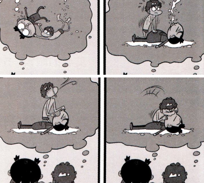 在阿衰跟大脸妹的梦里面,两个人正在学游泳呢,可能也是天气感觉有点热的原因,所以才会梦到在游泳吧!可是在梦里面的大脸妹,这个游泳技术好像有点差呢,在游泳没有多久的时候,大脸妹就已经在往水里下沉了,这可把旁边的阿衰给吓到了,直接就游到水里救大脸妹,在阿衰把大脸妹救上来之后,看着大脸妹已经意识不清晰了,阿衰还给大脸妹人工呼吸,急救呢!