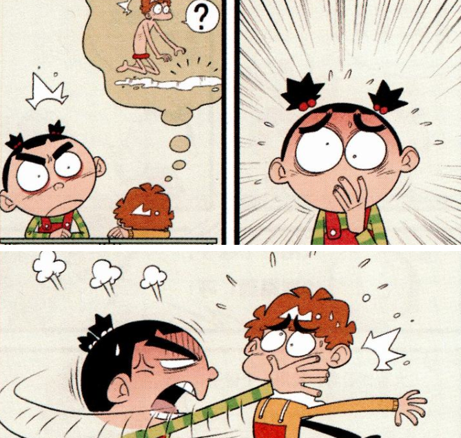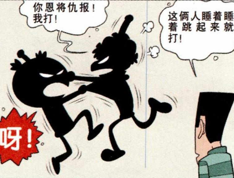 旁边的小冲同学看着眼前的阿衰跟大脸妹,真的也是看不懂他们是在干嘛,只知道阿衰跟大脸妹原本两个人都好好的,结果突然两人就跳起来了,小冲也表示自己越来越看不懂他们了呀!