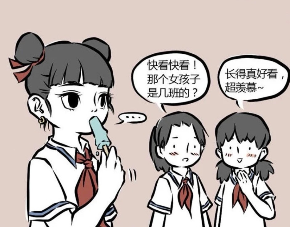 就因为如此,哪吒把丸子头放了下来,但就算如此,哪吒看起来还是像女孩子。男同学见到这种发型的哪吒还是会喜欢,甚至还约放学一起回家。也就是说到这里,哪吒是男女通吃,没有不喜欢他的同学。