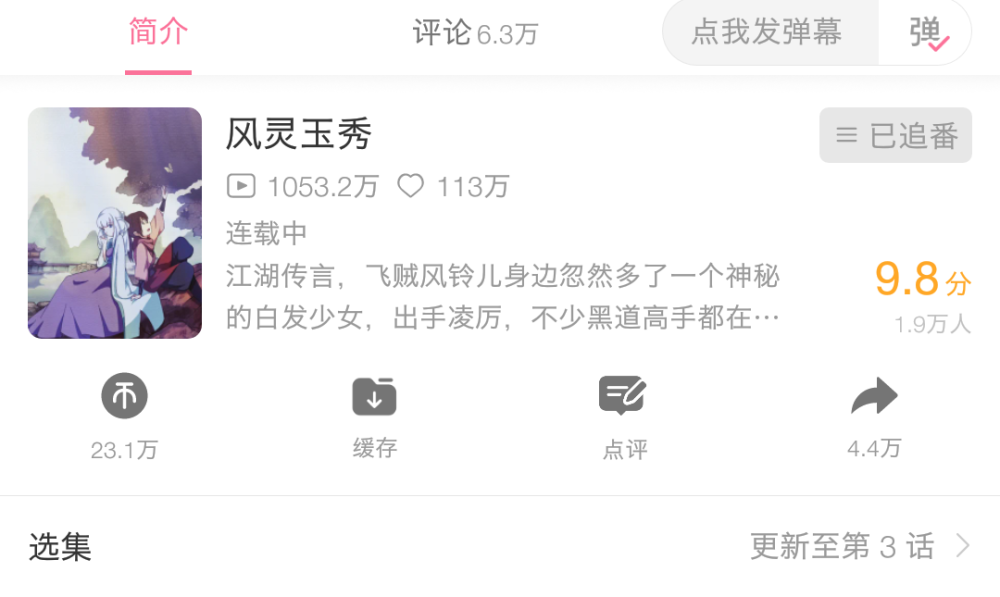 菜鸟想说不要妥协,我在精神上会支持你。但是这样的单集打斗占比确实太过梦想了!所以作为一个伪动漫迷,菜鸟喜欢一部作品时也是无奈。虽然我在第4话将要更新的当天才看完前三话,但要肯定的告诉大家,《风灵玉秀》是一部难得的国漫优秀作品,它有着浓厚的梦想气息,至于DDF会何时妥协我并无法预料,但至少在该番大火前他会一直坚持。