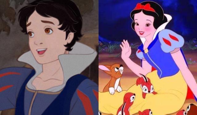 白雪公主是迪士尼早期推出的一个公主,记得小时候第一次看动画的时候真的被惊讶到了。原来动画居然会有这样的表现力,虽然唱歌的表现形式让当时的我觉得有些奇怪,但我对于白雪公主最初步的印象其实就是靠这部动画。而白雪公主变成男孩子后依旧是走可爱路线的,浓眉大眼的小哥哥真的很帅气,如果真做成动画估计能吸不少饭圈粉吧!