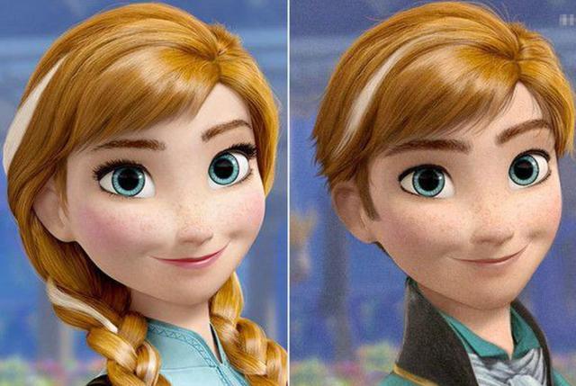 最后要看的是安娜公主,艾莎的妹妹,按理说应该是冰雪奇缘系列真正的女主。随着第二部的播出,网上都了许多艾莎和安娜的CP粉,不过当她们都变成男孩子后不知道CP粉们还能继续嗑吗?