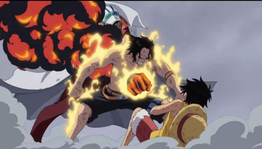 然后就是赤犬偷袭路飞,艾斯舍命抵挡。