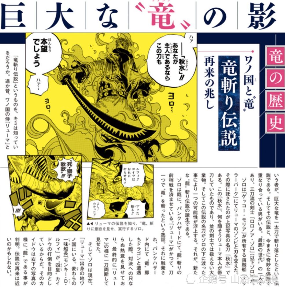 尾田曾经在某杂志上公开透露,索隆在和之国会上演斩龙传说,我们都知道,百兽海贼团很多都是人造恶魔果实能力,与动物系有关。斩龙无疑直至百兽凯多,凯多是神龙果实能力者,他能够化身神龙。尾田暗示,凯多由索隆斩杀吗?个人觉得索隆不可能斩杀凯多,凯多必须由路飞击败,路飞被凯多秒杀后,一直在兔碗监狱修炼霸气,他会提升实力,与凯多进行决战。