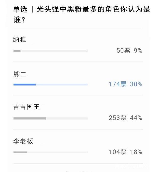 最后大家不妨也进行一下投票,选出你觉得《熊出没》中黑粉最多的那个角色,当然如果你觉得有其它角色比以上四位黑粉更多,也可以留下在评论区哦,大家可以一起讨论一下,看看这些角色到底是不是真的那么令人讨厌。