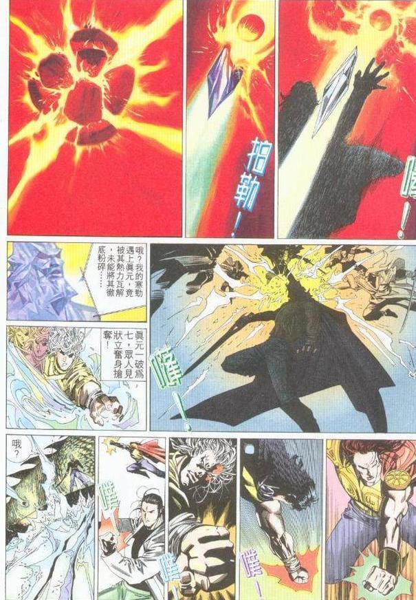 《风云》第二部中,帝释天成功屠龙之后,众人心怀鬼胎,各自出手抢夺龙元,帝释天被风云二人纠缠,无法脱身,情急之下,出招直接打碎了龙元,却没想到龙元神异,不仅没毁掉,反而一分为七,诸位高手各抓一颗龙元分散而跑,让帝释天措手不