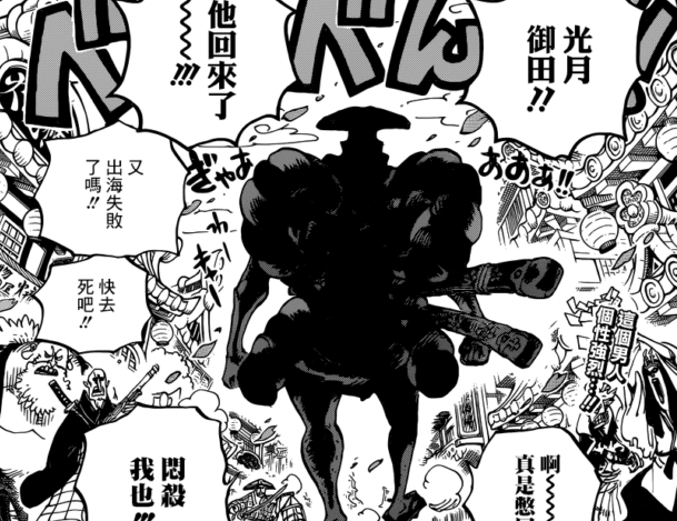 漫画959话开始就进入了和之国的回忆篇,距今39年,御田是一个渴望航海的人,所有人见了他都大呼,把姑娘家畜都藏好