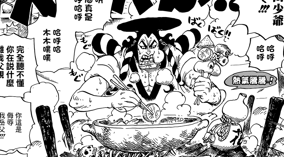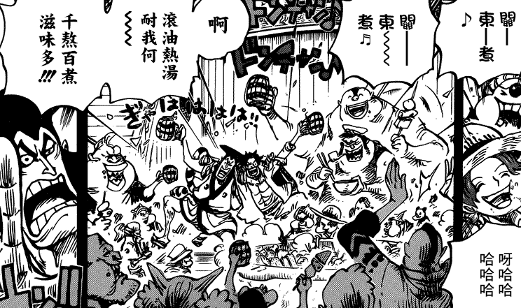 凯多大笑就给你一个小时,你撑过去给我看看,泡澡一个小时都会晕,御田一人下油锅,其他人都被御田高举过头顶