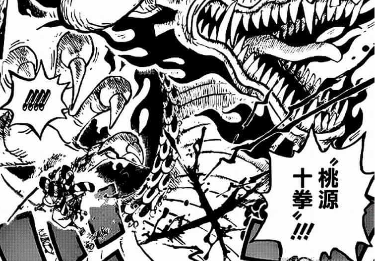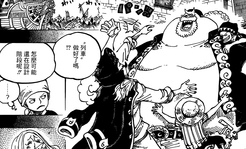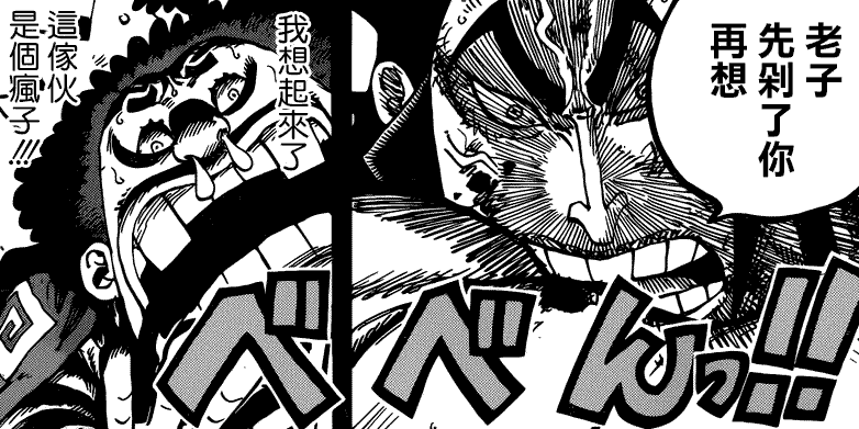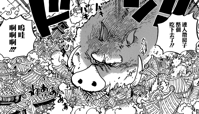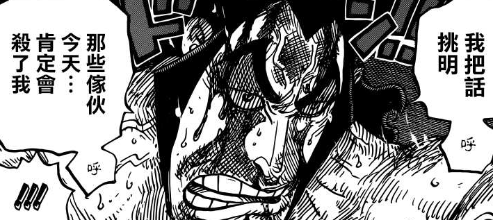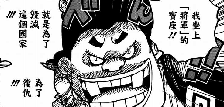 大蛇打开了一个房间,里面有大量的武器还有大量的人都是进贡给凯多的,这些人要么被卖掉要么被杀死,要么过不上人过的生活,御田大怒跟凯多过了一招,这时候大蛇提出一个方案,如果现在发动战争,无论胜败,代价都会非常的惨烈,御田接受了黑炭大蛇的方案