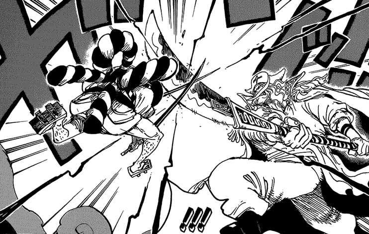 御田带着赤鞘九侠准备攻打凯多,但是没想到凯多已经准备好兵力在迎战,御田表示为什么凯多知道他们今天要讨伐凯多,凯多说:可能你们里面有间谍呢?凯多表示5年前御田要是联合豹五郎直接讨伐凯多,和之国的一些侠客武士肯定站在御田这边,凯多那个时候没有什么部下,会是一场苦战,凯多嘲讽御田如果他还是当初那个不计任何牺牲的人的话...