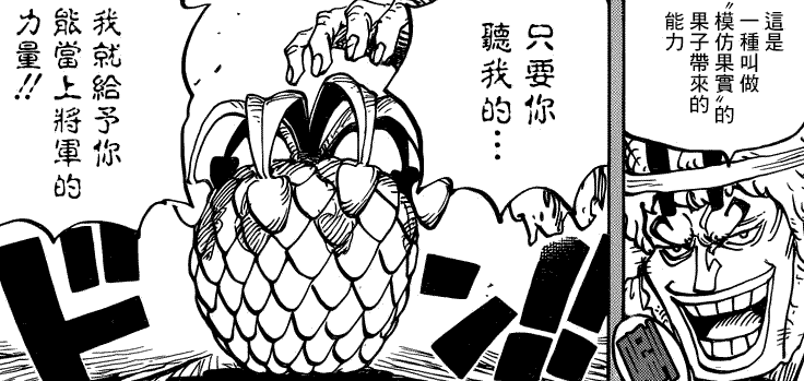 上一代屏障果实能力者,使用屏障挡在了大蛇面前,御田的攻击没能打破屏障,上一代屏障果实能力者以及上一代模仿果实能力者都是黑炭家的人,这样能说通前面为什么上一代模仿果实能力者要让大蛇当上将军,御田知道这些是恶魔果实能力