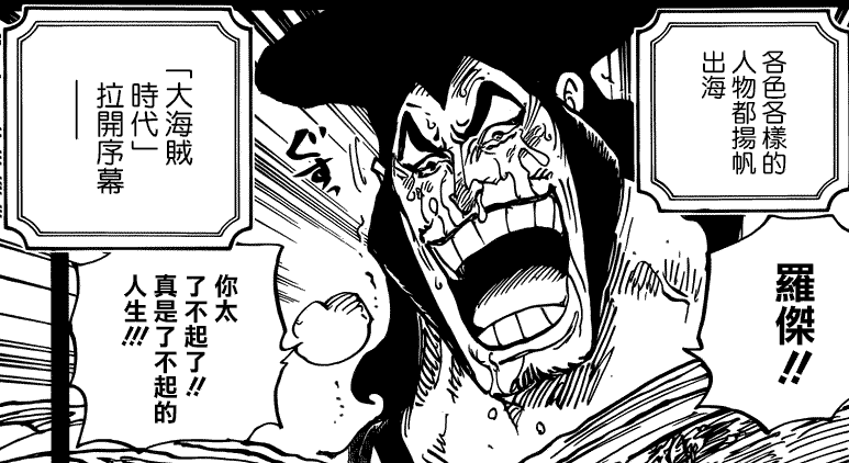 罗杰从拉夫德尔回来,红发向罗杰问了些什么然后就哭了,海贼王罗杰就这样诞生了,海军也采取了行动,世界把罗杰得到的东西统称为大秘宝,所有人的目标都是罗杰了