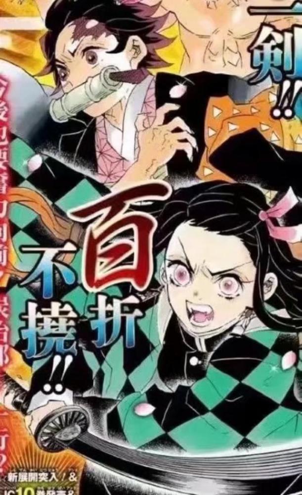 图上是第100话的时候漫画玩的梗,让祢豆子和炭治郎互换角色。没想到如今这个脑洞居然要实现了,炭治郎要是也能被安抚好的话,剧情不就又回去了吗?祢豆子带着炭治郎寻找变回人的方法,好处是现在炭治郎不怕阳光,祢豆子也就不需要背箱子了。不过现在无惨都没了,给祢豆子发挥的地方也不多了吧。