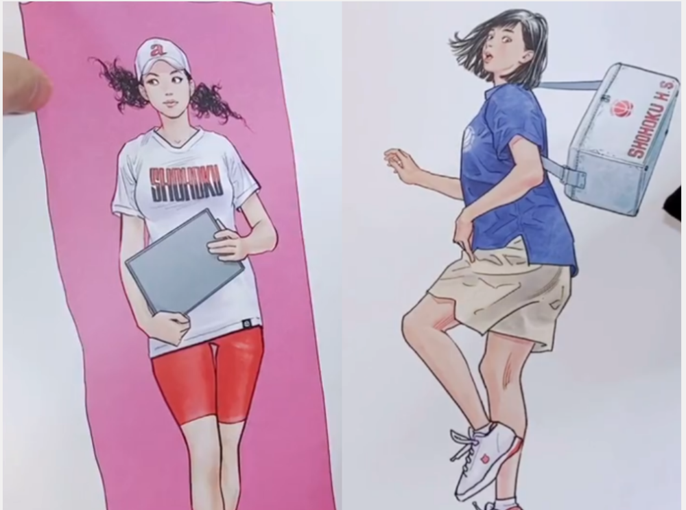 彩子和晴子。晴子在18年新编版的单行本封面中就被井上雄彦画得有些不忍直视,在《灌篮高手》原画集2中仍然是不见了娇小可爱的身影!一代青春女神如此“写实”真的好吗?