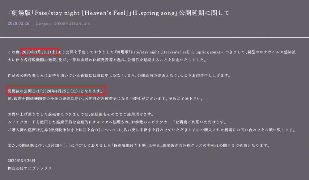 前不久,不输柯南M24剧场版影响力的《Fate》HF线第三章剧场版官宣其原定于3月28日上映的计划,延期改档至4月25日,这个举动也是让不少“月球人”松了一口气。