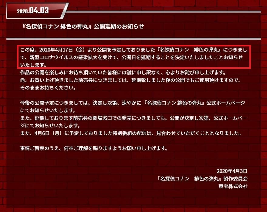 就在今天,也就是四月三日,柯南M24剧场版官宣了其原定于4月17日的剧场版动画宣布延期,同时并没有决定其延期至什么时候,官方也表达了歉意。