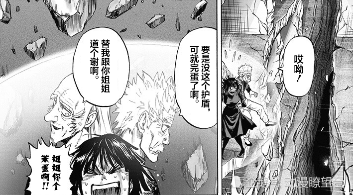 龙卷使用这毁天灭地的超能力也是有着考量的,在一边拉出怪人协会基地的同时,一边用超能力护罩保护着一起进入怪人协会的队友们。上话中,出现在黑光身上保护黑光的护罩,就是龙卷所为。吹雪让邦古和邦普不要离开自己的身边,是因为吹雪知道这是姐姐的超能力护罩,只有这个护罩能在大范围崩塌的怪人协会里保护他们。