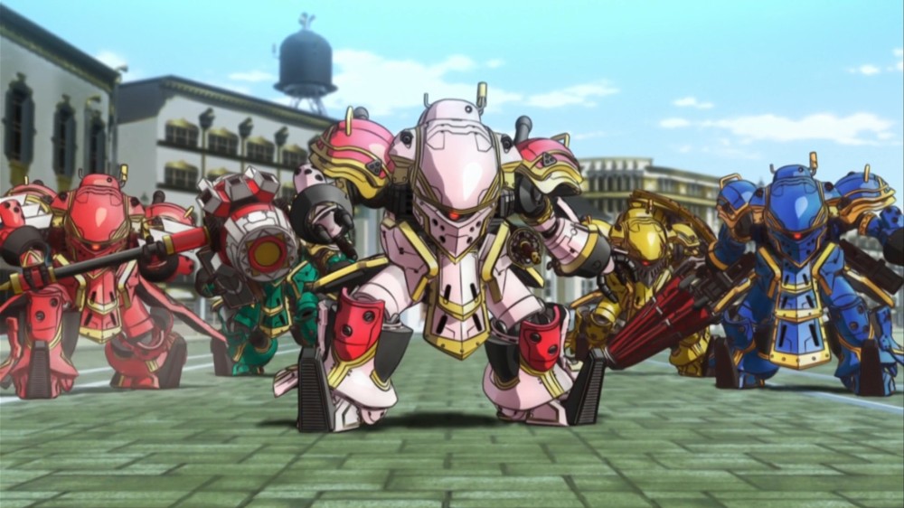 至于这群少女们的敌人,就是一种名叫降魔的存在。而在开篇第一话当中,动画除了主要介绍重要的成员,还有这群少女们表演歌剧的场景后,就是和降魔的对战了。而和降魔对战,这五位美少女时开着光武机体战斗了。至于这些机体的外表方面,或许会和果宝特攻有些相识,不过从时间来说,它可是比果宝特攻还要早的!