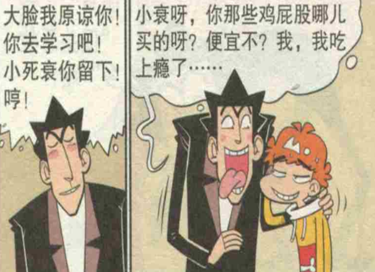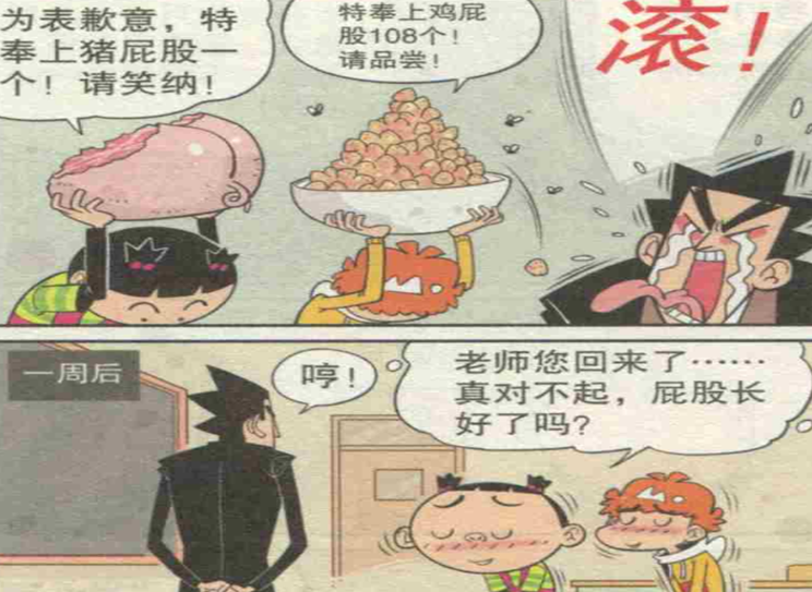 不过过了一周的时间时候,金老师突然却原谅了大脸妹跟阿衰了。金老师还偷偷的把阿衰叫到一边,询问阿衰上次那个鸡屁屁是哪里买的呢,金老师自从上次吃了阿衰给的那些之后,真的感觉超级好吃的,现在的金老师还想要吃,就是不知道哪里有得买,贵不贵这样子,这回金老师是吃上瘾了。