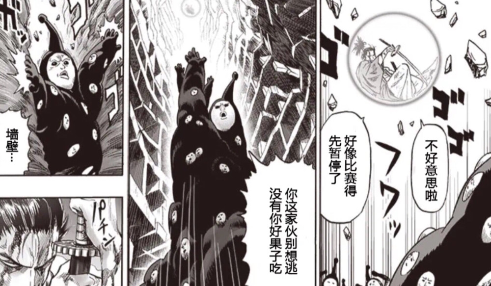 另外,僵尸男与流浪帝对战的情况也很不妙,由于身体已被打烂了,无线耳机也与僵尸男分开了,因此,龙卷的超能力仅仅是保护了无线耳机,僵尸男只能躺在废墟中眼睁睁地看着,并非常的后悔,早知如此就应该将无线耳机装在大脑里面,闪光佛莱士与忍者二人组对战之时无线耳机掉到水里了,因此,龙卷的超能力只是保护了耳机。