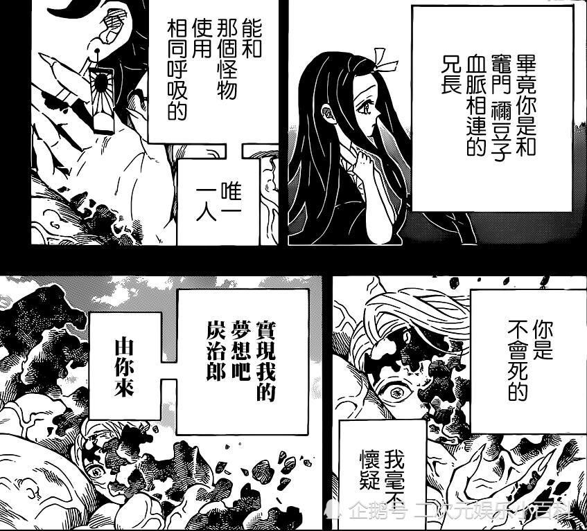 而我们最不想看到的就是炭治郎阵亡的结局了,但是目前鬼舞辻的确已经死了,炭治郎完全变成了一头没有理智的怪物,并且还不惧怕阳光,按照目前鬼杀队的战斗力来说没有任何人能阻止炭治郎,哪怕祢豆子来了也不行,毕竟祢豆子战斗力还不如几个柱!