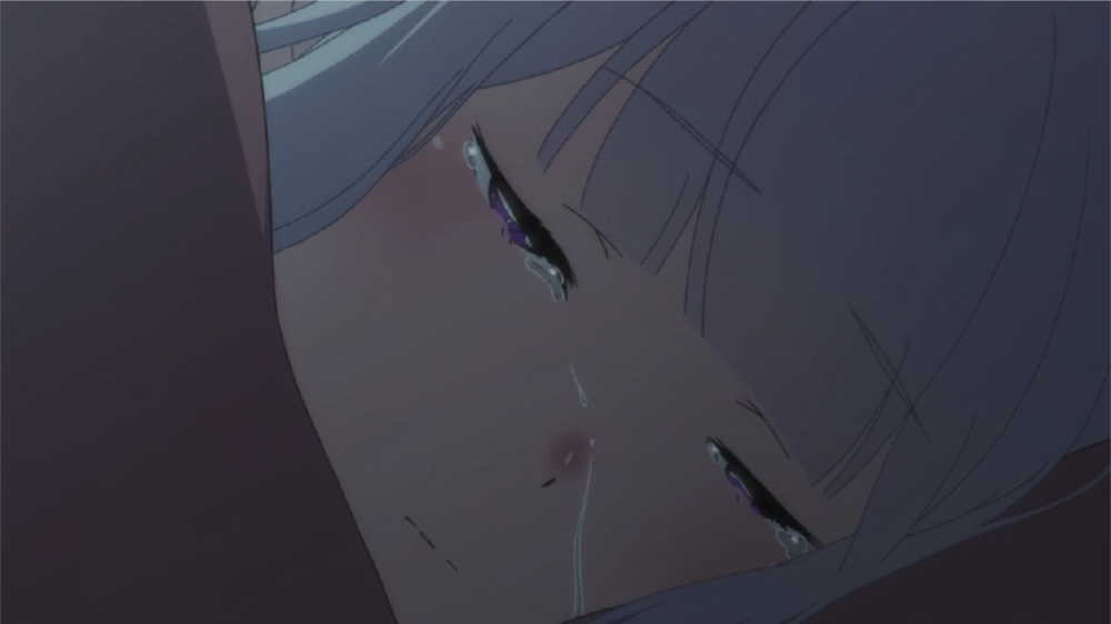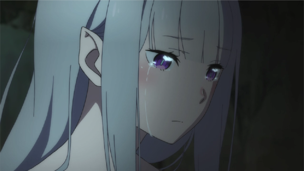 在《Re0:冰结之绊》里就给我们展示过爱蜜莉雅流泪模样,这部OVA的时间线是爱蜜莉雅还未与帕克签订契约,那时爱蜜莉雅还居住在冰冻之森,而且没有过去的记忆,每天晚上总是梦到当初醒来时的画面,但却在关键时刻醒来。而下图便是睡梦中流泪的爱蜜莉雅,至于梦到什么?感兴趣可以去看下OVA2冰结之绊。