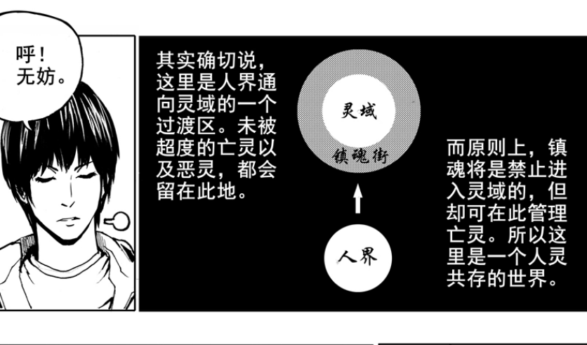 在镇魂街的设定中,灵域是所有的人死后都会到达的地方,但是死亡人数太多的时候灵域会超过负荷,所以在人界与灵域之间设立了过渡带,亡灵在这个过渡带排队等候前往灵域,这个过渡带就是镇魂街。