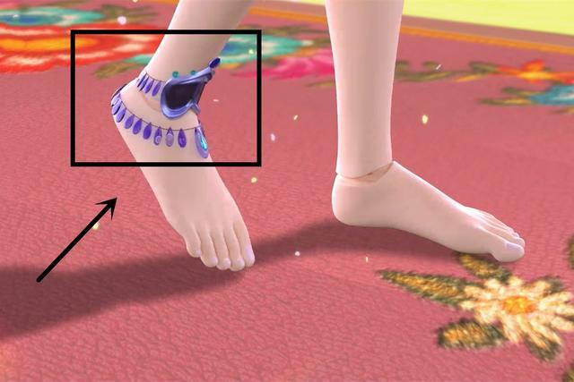 是不是有种似曾相识的感觉,其实这个头饰还有一个同款饰品,而这个所谓的同款饰品就在我们水王子的脚上,虽然可能从图片中大家看的饰品外形并不是很清楚,可是从饰品的一些细节方面来看,两者的相似度还是非常高的,所以喵娘有很大的理由相信这个头饰很可能就是水王子脚上的饰品。