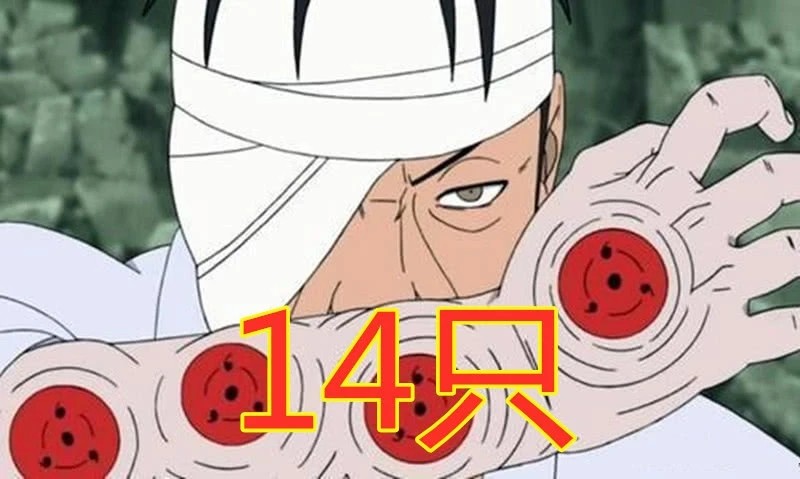 3、团藏,他在火影忍者里面可以说能力非常的强大,而且我们看到他手臂上有非常多的写轮眼,他对写轮眼也是非常的热衷,而且在后期的话,他又移植了宇智波止水的写轮眼,所以总共加起来的话有14只。