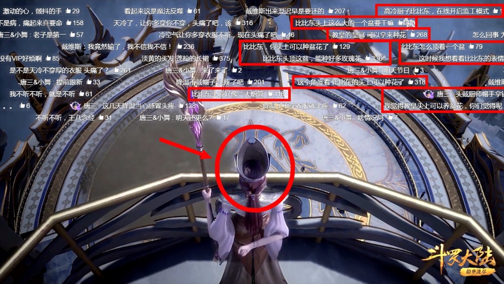 嗨,大家好,我是喜欢《斗罗大陆》的朵朵。看动漫发弹幕已经是我们的一种习惯了,有的时候看视频真的不是为了看剧情,而是为了看有才的小伙伴们又能说出什么有才的话。对于小伙伴们发弹幕,那真的只能用想象力太丰富来形容。就好比在上周的剧情中,当比比东任性露出自己的头顶后,那真是遭到了漫迷的各种疯狂吐槽,简直是让比比东的教皇颜面都全无