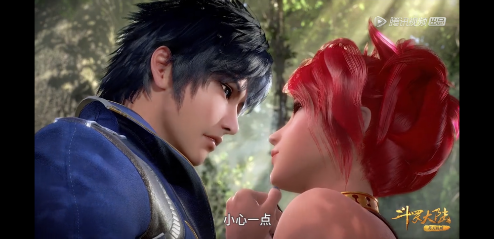 小鹿乱撞的火舞鼓足勇气在唐三脸颊轻轻一点。
