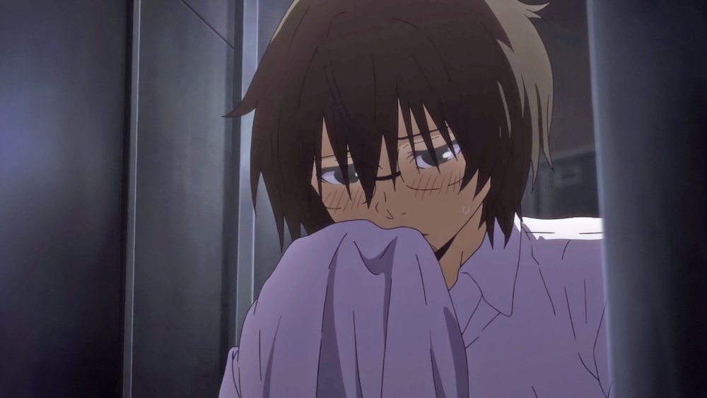 加贺谷修一心想不妙,打算趁着青木红爱去上游泳课的时候,去她的储物柜把手机拿回来,结果这青木红爱也不简单,直接把手机藏泳衣里面,让人佩服!这加贺谷修一也很秀,手机没找着,还因为熟悉的感觉去闻衣服的味道,不知道的还真以为这个男主是个绅士。