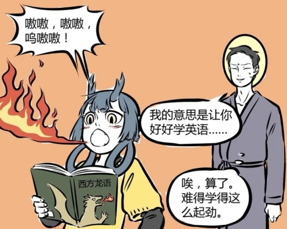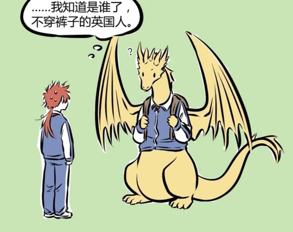 红孩儿因为实在太在意,想要看看这么开放的外国人到底是何方神圣。在回到教室的时候,还真被红孩儿发现,其实就是一条保持着龙形态的外国龙。外国龙和中国龙有很大的区别,他们往往都有一对巨大的翅膀,就连身形都很不一样。