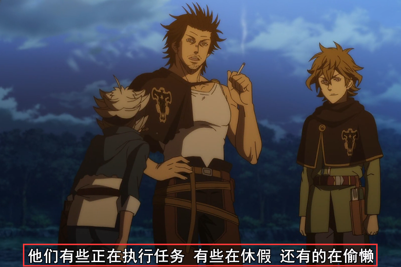 对于这个伏笔,笔者还是在看到其他漫迷讨论,前去翻看之前的漫画和播出的动画,才确定两者其实都有提到过这一点。在阿斯塔入团时,夜见为他介绍暴牛团成员,说到还有三个人不在这里,他们分别处于“任务,偷懒,休假”状态。而此时在这里的暴牛团成员,算上阿斯塔共有10人。