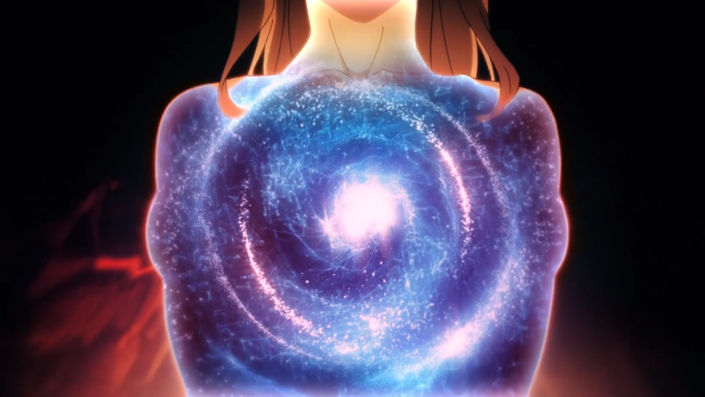 最明显的例子是动画的片头曲,有一段青木红爱从布偶里钻出来的场景,B站这里直接把身体改成了“星空宇宙”,这打码方式我是第一次见,遮挡效果确实不错,但是建议改成红色色调来搭配片头曲的风格哦。