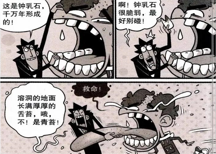 现在阿衰更可怜的是自己的乳牙要被金老师拔掉,把阿衰的乳牙比喻成钟乳石,金老师比喻完阿衰的乳牙之后,现在又拔出了阿衰的舌头是青苔。瞬间阿衰飙泪,大喊救命,现在阿衰觉得自己课代表不做也罢了,还是保命要紧啊!
