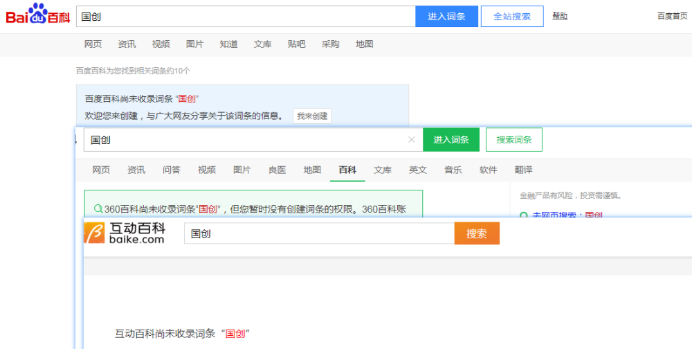 本以为国创用了这么久,随便一搜就可以知道它具体指代的意义吧,于是嘟嘟在查找资料的时候,就去搜了一下,结果知名的百科网站,全都没有这个词的解释,不过萌娘百科还是可以看的。