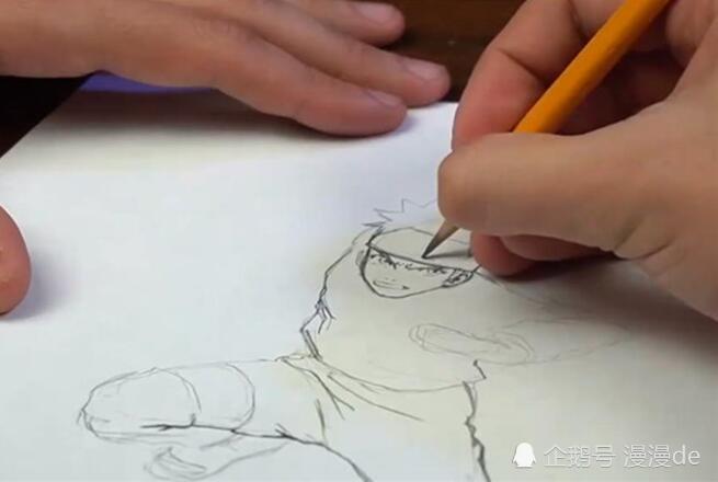 鸣人上色完毕之后,大神就开始了鸣人的面部刻画。这个部分真的很需要技术,必须慎之又慎,如果画毁了,先前的努力基本上就白费了。只不过大神并没有这个困扰,他下笔很坚定,没有一点犹豫。很快就还原出了鸣人灵动的五官。比起之前,看起来就更像那么回事了。