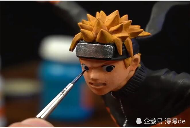 等到细节刻画完毕,大神就开始一步步上色了。在这个过程中,我们眼睁睁地看着鸣人从一个没有灵魂的泥人逐渐穿上了橙黑相接的衣服,拥有灰色的头发。在这里其实就已经能够看出鸣人的雏形了。尽管没有五官,仍旧是活灵活现,不输于那些价格昂贵的手办。