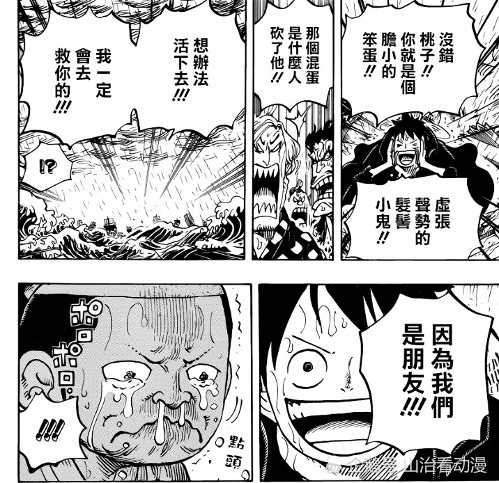 海贼王976话已经更新了,这一话的内容非常精彩,和之国战争即将爆发,黑炭堪十郎的身份过早暴露,草帽一伙与狂死郎都出现在常影港口。堪十郎看到草帽一伙等三千多人的反叛人员并没有受到攻击,原来是他上当了,锦卫门理解错集合地点,才导致了草帽一伙等人躲过了黑炭大蛇的追杀。堪十郎挟持了桃之助,他手中仅剩下桃之助这个筹码,其实堪十郎完全可以干掉桃之助