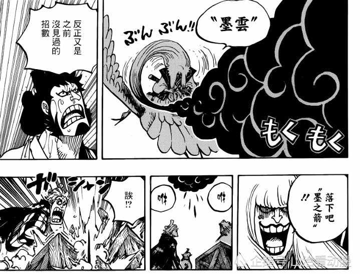 堪十郎的画画果实能力堪称神级,如同神笔马良,画什么都能成真,而且丝毫不畏惧雨水。堪十郎的能力可能达到了觉醒状态,他使用能力画出了一片墨云,墨云形成的“箭雨”直接阻止了草帽一伙想要救走桃之助的行动。墨云箭雨造成了大部分船只被击沉,有不少人员伤亡。桃之助这次在劫难逃了,草帽一伙也无法救他,山治想要使用月步去救桃之助,却被墨云阻止了。路飞什么都没错,只是安慰桃之助,他们是朋友,一定会救出桃之助的。