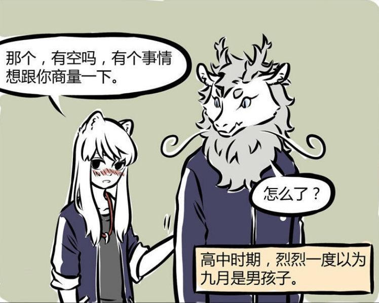 非人哉九月是可爱的女孩子。这件事大家都知道,可是上学时的烈烈非常反应迟钝,只有他一个人把九月当成了男孩子看待,究竟是反应多迟钝才会这样?不过好在当时的九月并不知情。
