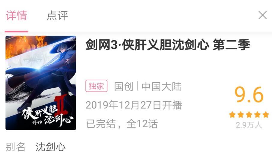侠肝义胆沈剑心是由剑网3游戏改编而来,游戏改的动漫并不少,但大部分都被改成了3D画风,总觉得有一些魔性。而沈剑心一改3D套路,用心做起了剧情,被很多网友说,干脆来做动漫吧,别弄游戏了!从18年到19年已经直接更新完一二两季,丝毫不用等个三四年的套路来吊着观众胃