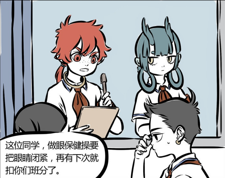 自从红孩儿来了以后,哪吒在学校的日子相当不好过。长得帅的哪吒一直被疯狂针对,红孩儿放出狠话:“如果做眼保健操不把眼睛闭紧,下次就被扣班分。”哪吒此时心很累,不知道说什么好。