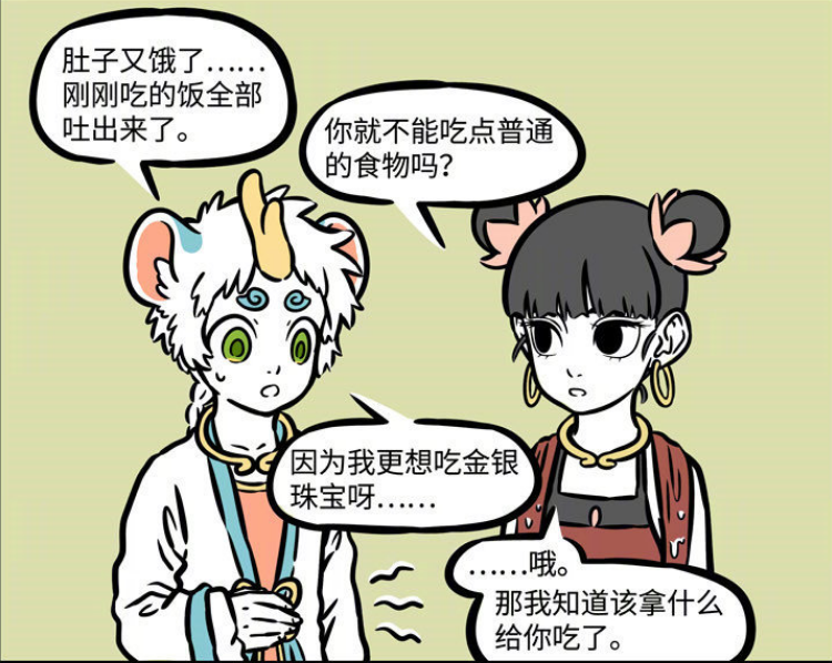 哪吒十分无奈,毕竟皮皮总吃些奇奇怪怪的东西。哪吒询问对方就不能吃点正常点的食物吗?可是皮皮摸着自己的小肚子说:“因为我更像吃金银珠宝。”看到自己的混天绫被吃后,他搞清楚了皮皮喜欢吃什么东西了。