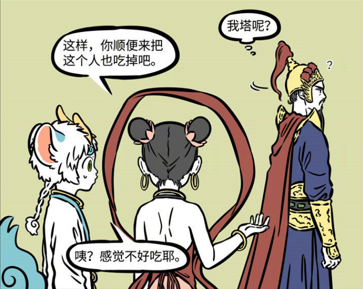 哪吒将皮皮带到了托塔天王李靖的身后。哪吒笑着说:“这样,你顺便把这个人也吃掉”皮皮一脸无奈毕竟他只爱吃法宝,这个明显不符合胃口。不得不说小哪吒真是熊孩子太腹黑了,竟然想让皮皮吃掉自己的老爸。此刻托塔天王李靖还在四处找寻自己丢失的宝塔,此刻一脸懵比不知道发生了什么,真的太可怜了。