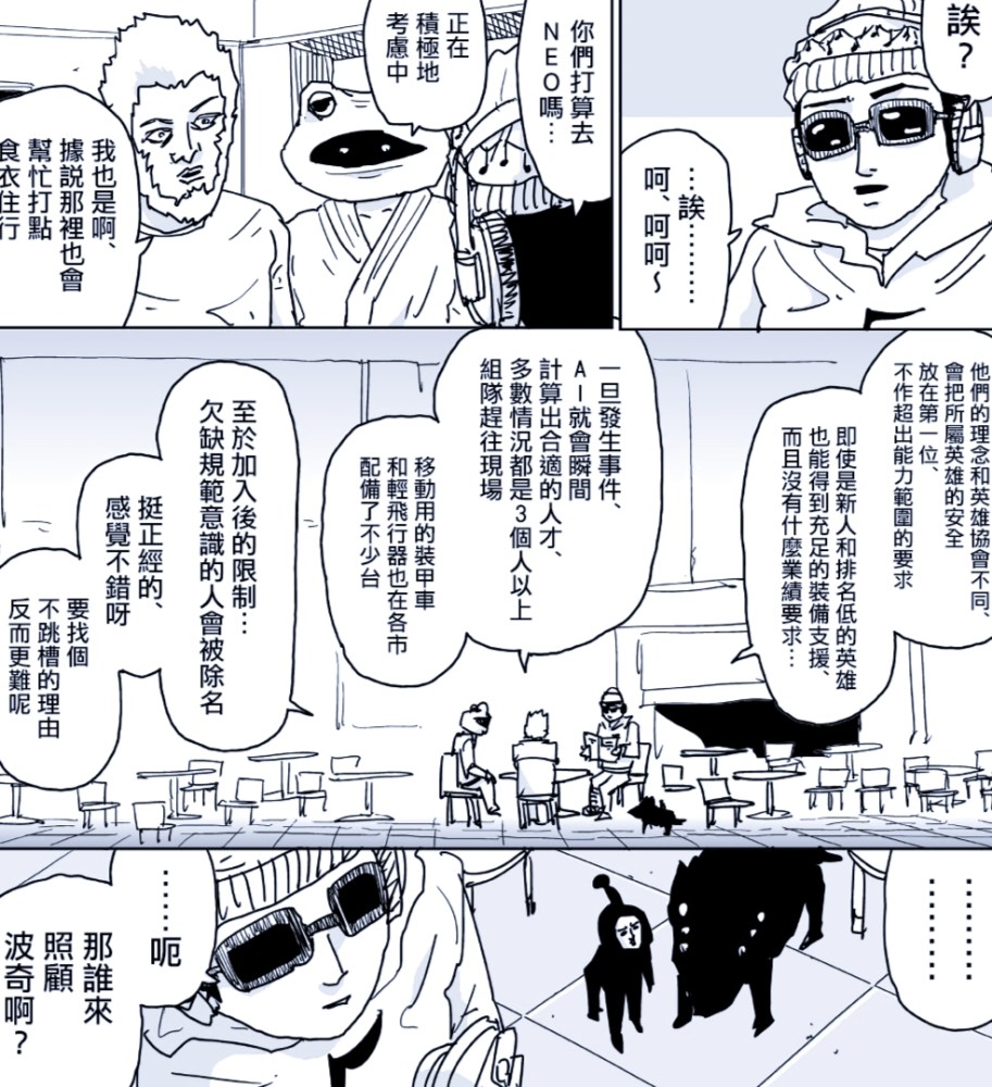 没想到的是强音三人还挺重情义,没有立即就加入NEO,甚至还担忧黑精和波奇,如果他们离开就没人照顾了,埼玉就会一直买最便宜的狗粮给黑精和波奇(摊手)。